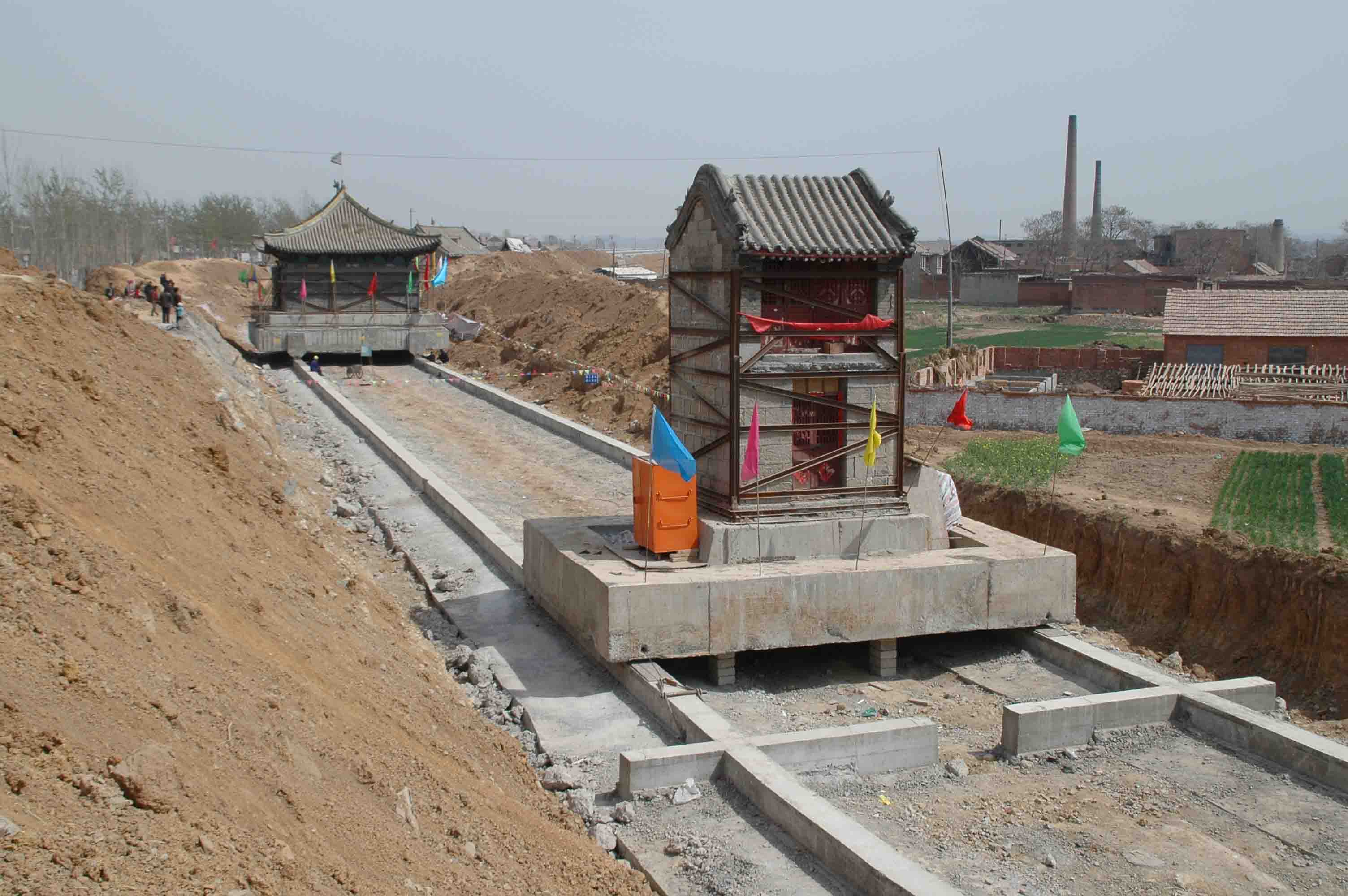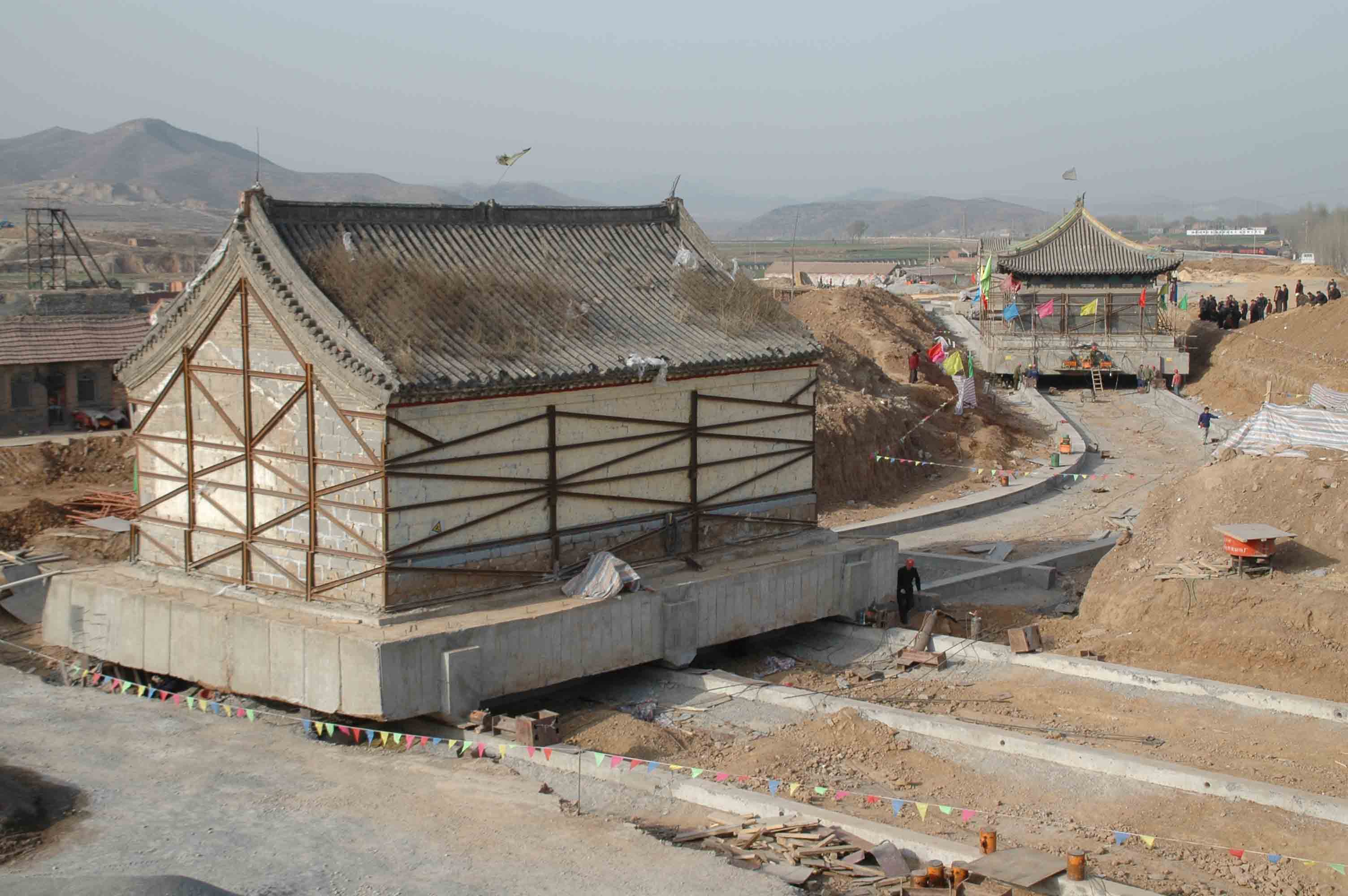 河南林州慈源寺古建筑群平移帶轉(zhuǎn)向90度工程(一) 河南林州慈源寺古建筑群平移帶轉(zhuǎn)向90度工程(一)