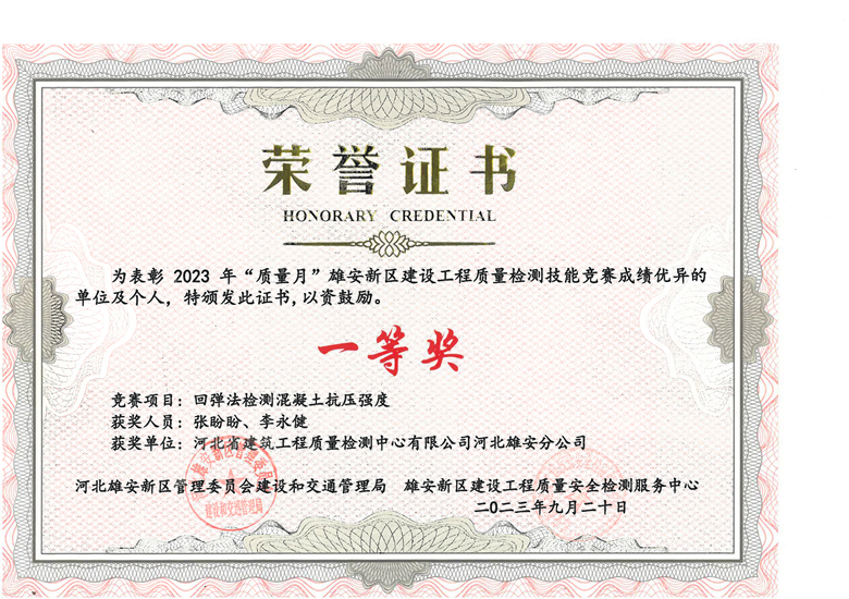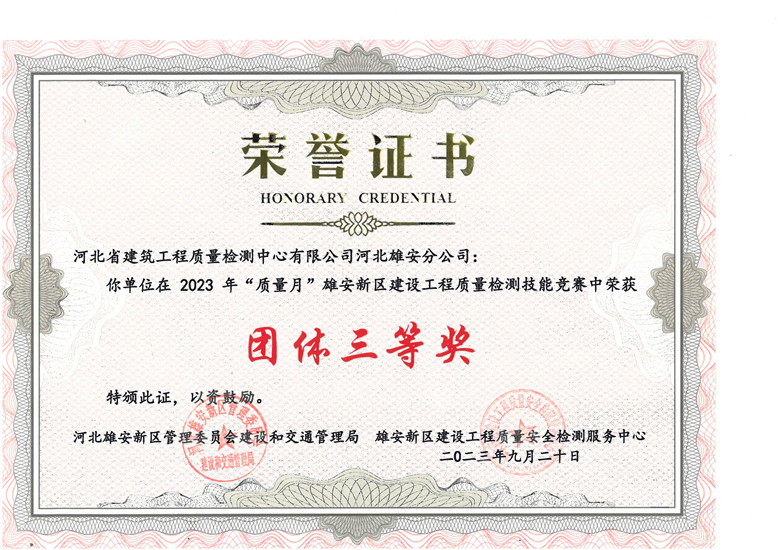 雄安分公司榮獲雄安新區(qū)建設(shè)工程質(zhì)量檢測(cè)技能競(jìng)賽多項(xiàng)獎(jiǎng)項(xiàng)