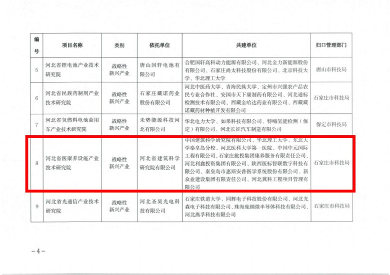 為深入貫徹落實黨的二十大精神,深入踐行“健康中國”戰(zhàn)略,立足醫(yī)康養(yǎng)融合高效發(fā)展,探索醫(yī)康養(yǎng)全產業(yè)鏈優(yōu)質高效發(fā)展的路徑和舉措,河北省建筑科學研究院有限公司牽頭發(fā)起成立的河北省醫(yī)康養(yǎng)設施產業(yè)技術研究院近日通過河北省科學技術廳審批。
