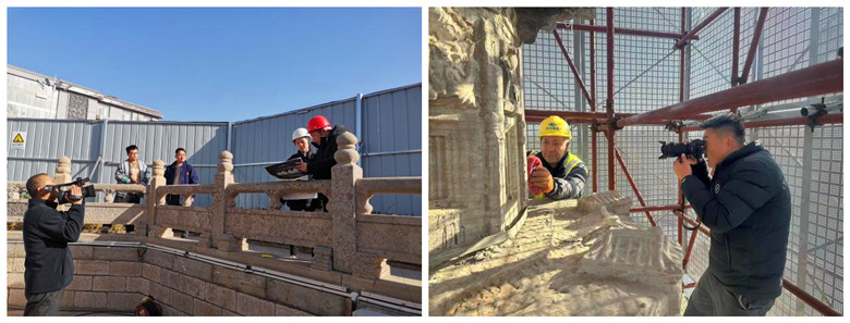 2023年12月8日,趙州陀羅尼經(jīng)幢保護工程施工現(xiàn)場,我公司技術(shù)人員攻堅克難、不畏嚴(yán)寒,依然奮斗在施工崗位。在新搭設(shè)的腳手架上,他們牢記文物保護方針,采用科學(xué)、合理的技術(shù)手段對石質(zhì)文物表層結(jié)殼、結(jié)膜污染進行清理,并依照方案核對塔身各類殘損病害,為后期的修繕工作做足準(zhǔn)備。